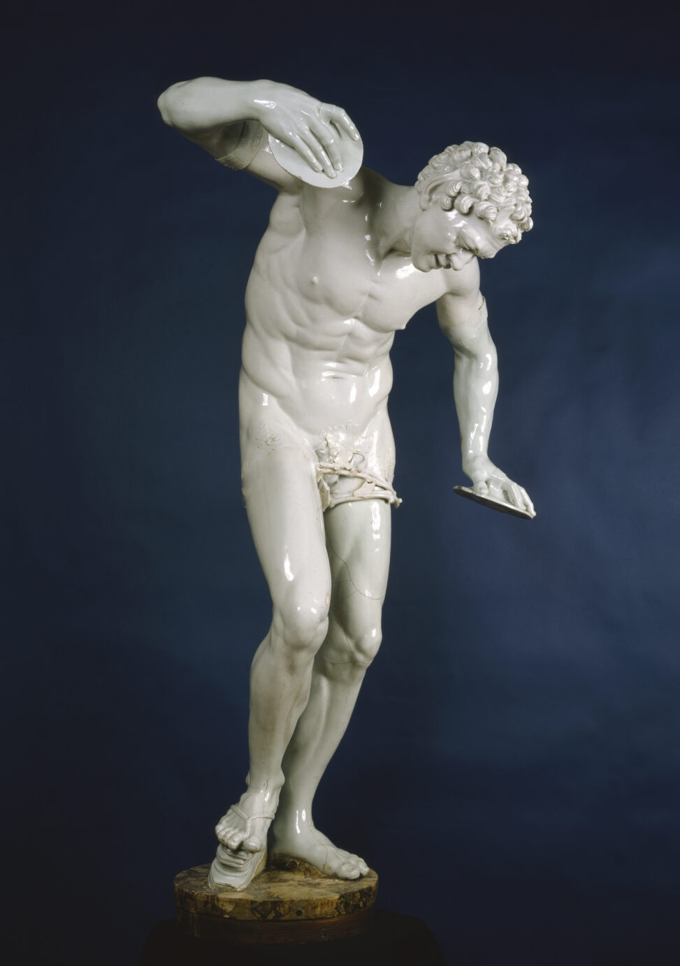 È il caso del Fauno che suona le catube (cd. Fauno danzante) del Museo Archivio Richard Ginori della Manifattura di Doccia. L’opera in gesso presenta le tipiche rotture “a taglio” necessarie per la successiva traduzione in porcellana.