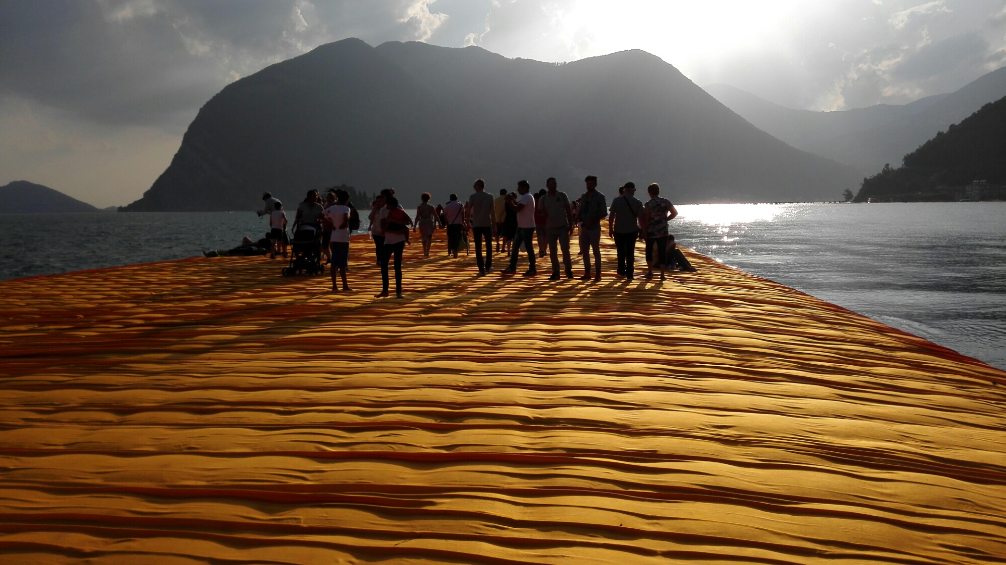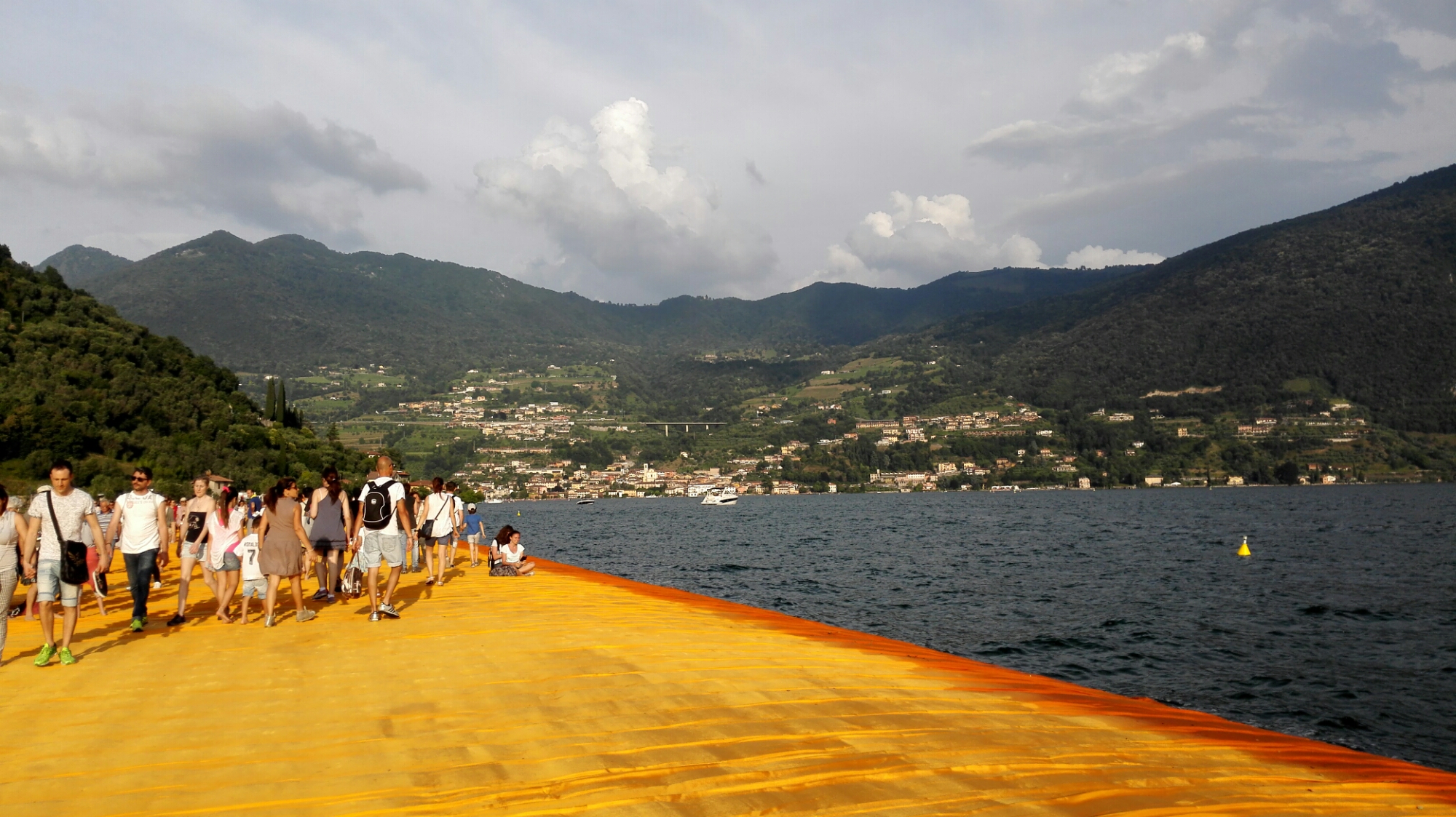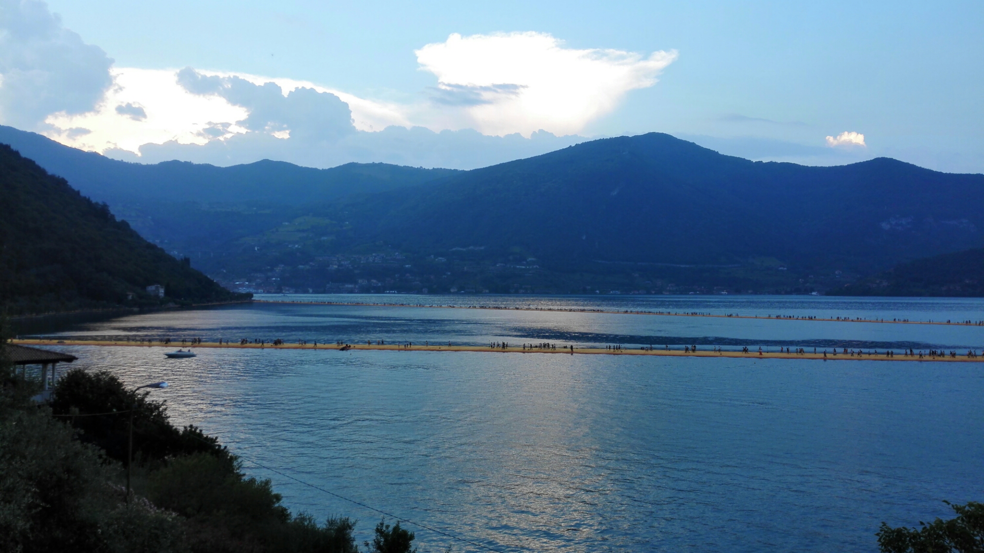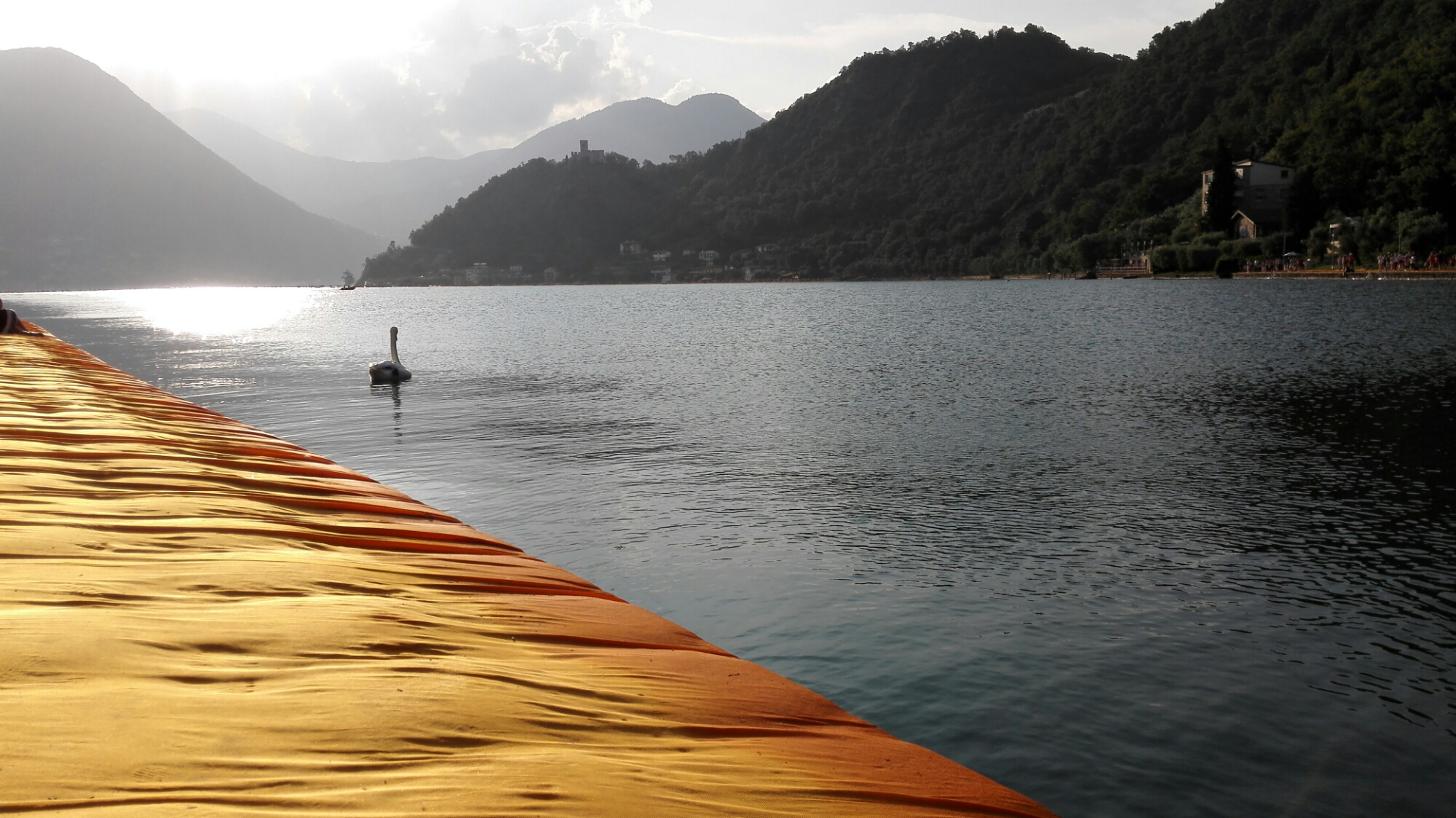 L’installazione artistica di Christo dove centinaia di metri di tessuto arancione dai riflessi dorati che ricordano i bagliori dell’acqua al tramonto, avvolgono la passerella che regala emozioni e stupore a tutti i visitatori.