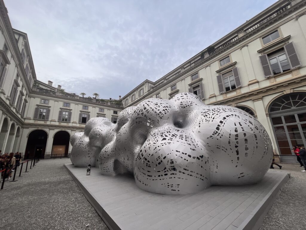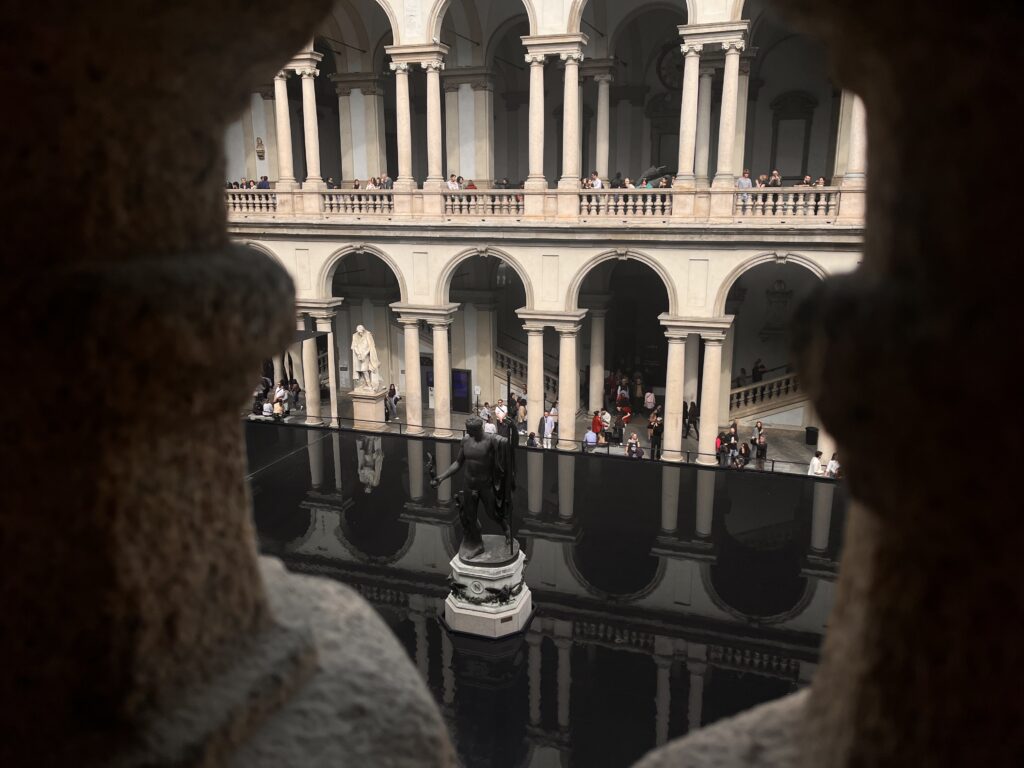Gli archi e le colonne si moltiplicano lasciandoci senza fiato: un buon caffè guardando la statua di Antonio Canova nello cortile d’onore chiude l’ultima giornata del Salone del Mobile 2023!
